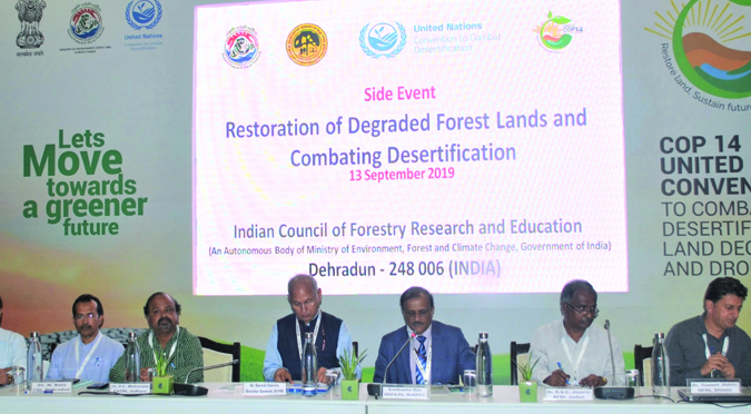 Side event "Restoration of Degraded Forest Lands and Combating Desertification" Organized by ICFRE at UNCCD COP-14 on 13th September, 2019