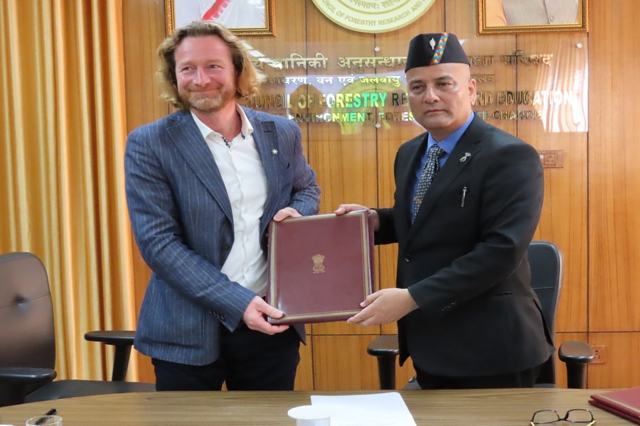 4 फ़ोटो22.11.2023 को देहरादून स्थित आईसीएफआरई और एलायंस ऑफ बायोवर्सिटी इंटरनेशनल तथा इटली स्थित सीआईएटी के बीच समझौता ज्ञापन पर हस्ताक्षर किए गए। इस पर आईसीएफआरई के महानिदेशक डॉ. जगमोहन शर्मा और प्रधान वैज्ञानिक एवं कार्यक्रम प्रमुख डॉ. क्रिस्टोफर केटल ने हस्ताक्षर किए